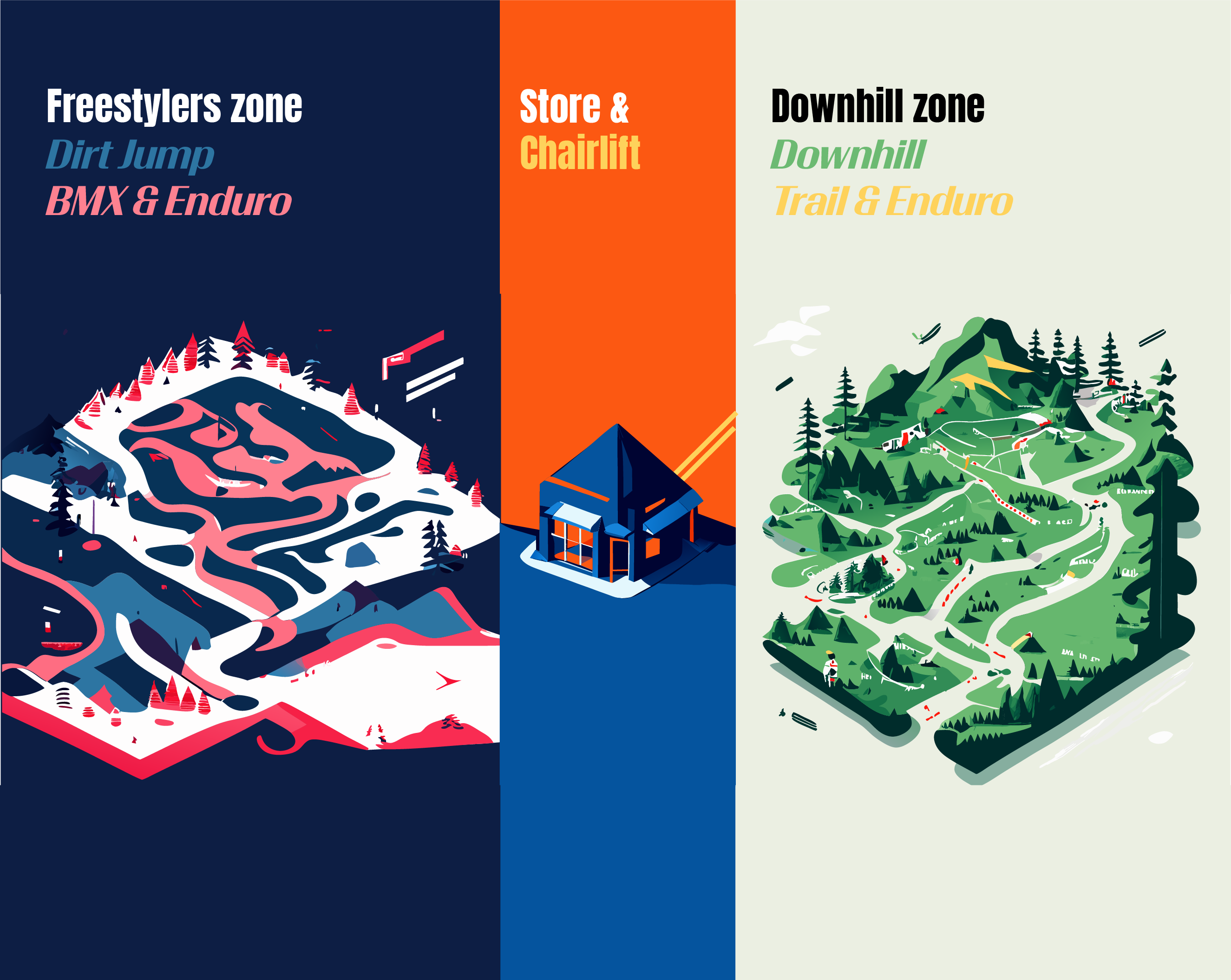 mountainbikers van alle niveaus en elk type mountainbike. Het park is zorgvuldig ontworpen